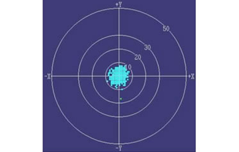基板品质异常 | 因基材内部树脂、玻纤之不均一性,引发偏孔 | 确认基板品质 (例)用孔位测定机的精度确认画面可确认基板的不均一状态→明显的条纹状等 |