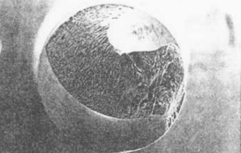 在钻孔加工时发生。断针的形态有折断和扭断。折断一般是受自横向之负荷而发生,断针位置多在沟底部。扭断一般是因瞬间负荷过大而发生,断针位置多在沟中间等沟底部以外部位。
