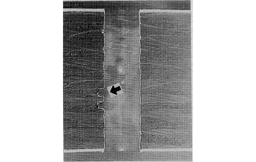 基板品质之异常 | 因基材内部树脂,玻纤之不均一,引起孔壁粗糙。 | 确认基板品质 (例)用孔位测定机的精度确认画面可确认基板的不均一状态→明显的条纹状等 |