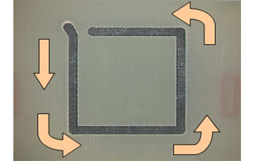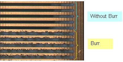 从基板上加工出方块,用显微镜测量纵向和横向的尺寸,根据其平均值调查加工尺寸精度