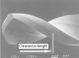 nail head. In the case of extreme wearing, a drill bit will form a front taper shape and lose the