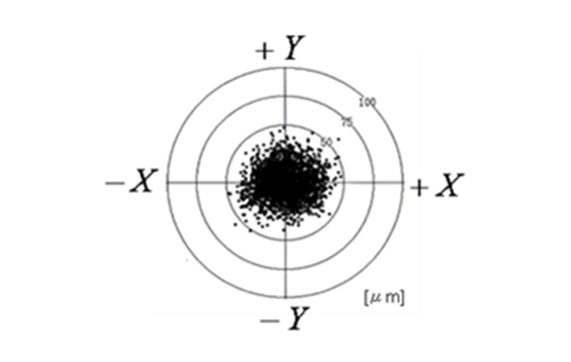 the center of the data group of the displaced drilled holes is set to origin (0,0) as shown in the