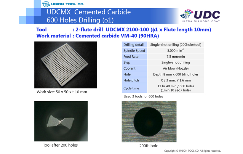 UDCMX Cemented Carbide (VM-40) 600 Holes Drilling