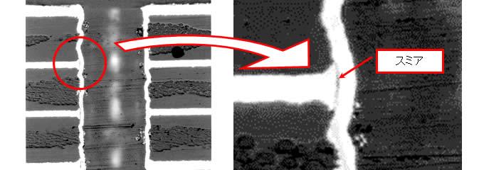 デスミア処理を行っていない | スミアが残存した状態 | デスミア処理の実施 |
