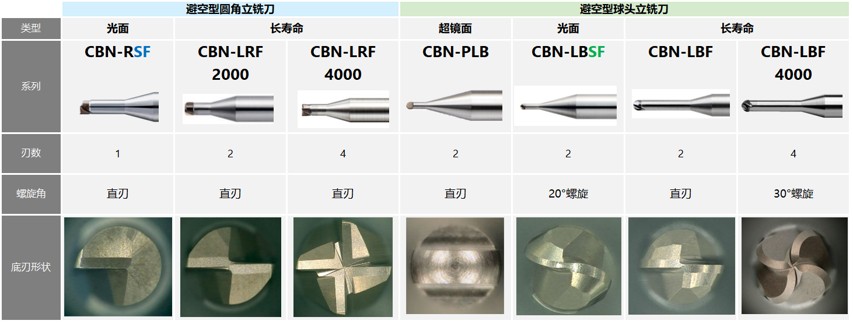 超镜面加工用CBN-LBSF,避空型平刀CBN-RSF的刀刃形状具有抛光效果,可以达到比以往更好的加工面。对于注重加工面的高硬度材精加工,请灵活有效利用。