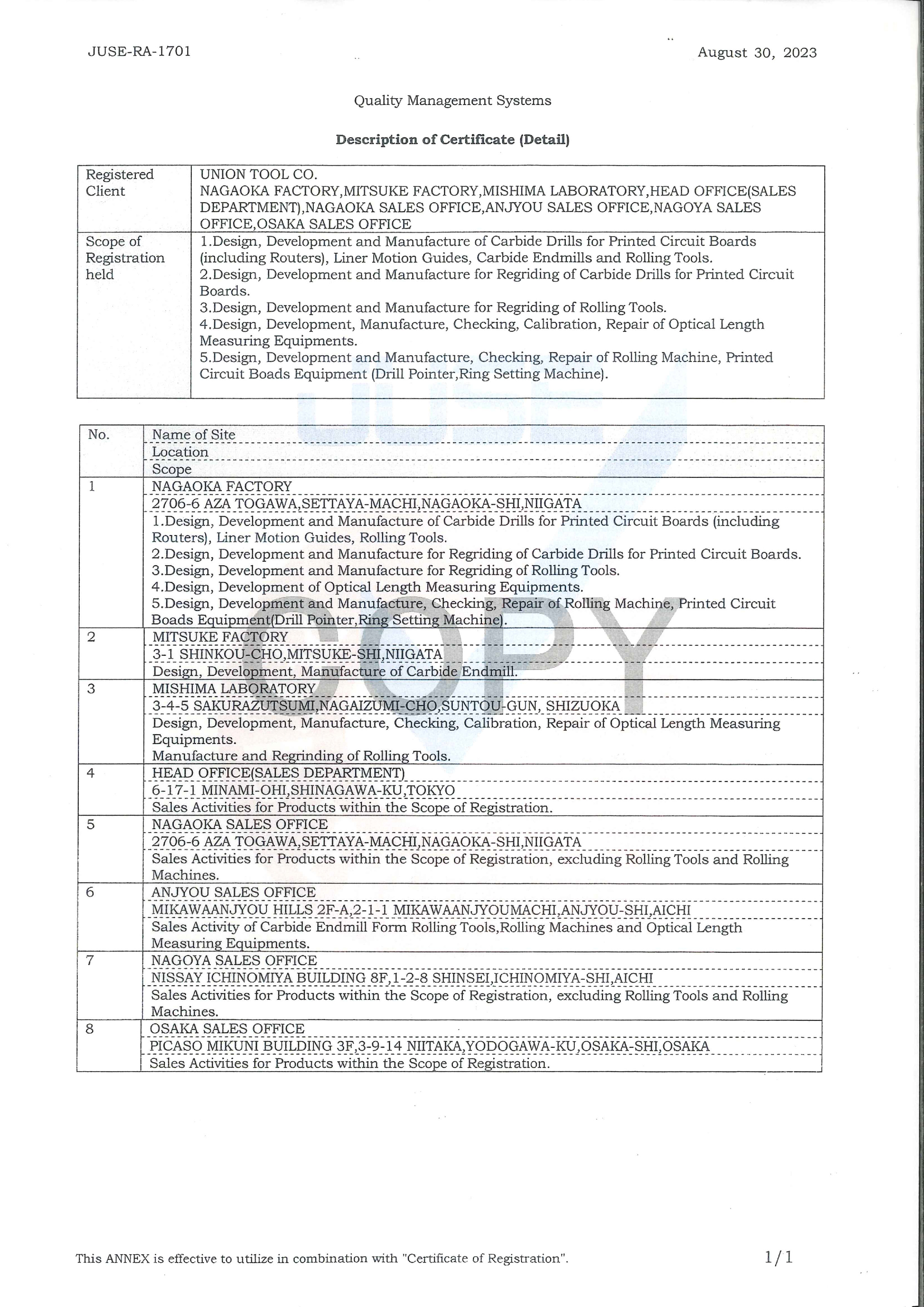 (NAGAOKA FACTORY, MITSUKE FACTORY, MISHIMA LABORATORY, HEAD OFFICE(SALES