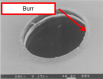 Burr occurs around drilled holes as shown in the right hand picture.