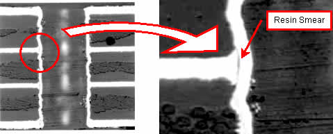 Resin is melted by the drilling heat, and attaches to the inner or outer copper layers.
