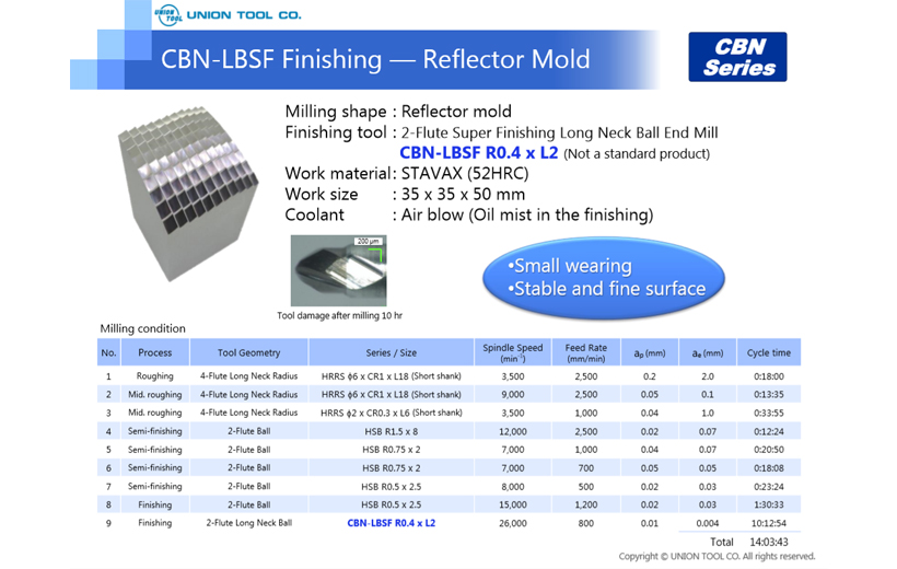 CBN-LBSF STAVAX Finishing Reflector Mold