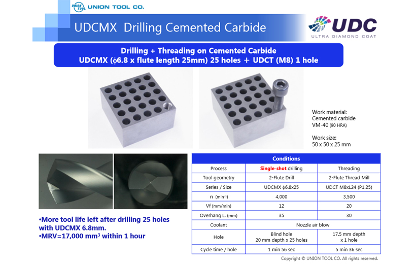 UDCMX Cemented Carbide (VM-40) 50 Holes Drilling
