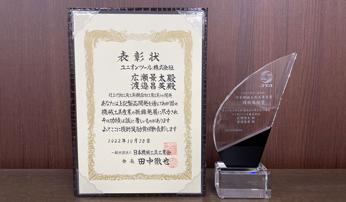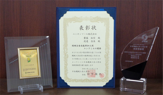 Japan Cutting & Wear-resistant Tool Association (JTA) was announced, and our End Mills -UDC-H Series- received the Technology Encouragement Award and the Environmental Special Award.