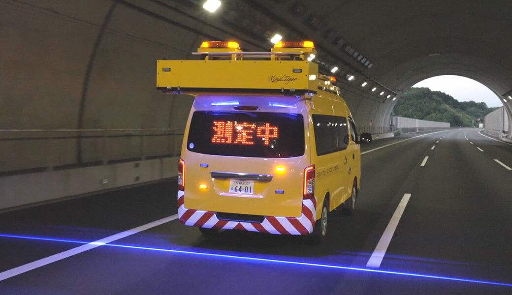 走行する一般車と同じスピードで、車間距離を保ちながら測定走行が可能。渋滞をさせることなく、安全な計測ができる
