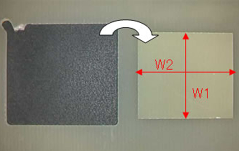 ピースを基板から切り抜き、 縦・横の寸法を顕微鏡により測定し、その平均値から加工寸法精度を調査