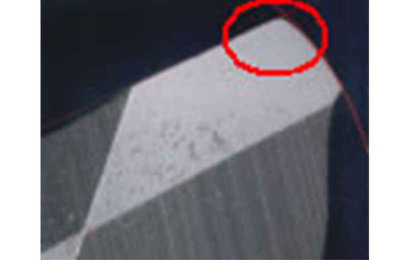 外形形状から求めた再研磨取り量で再研磨を行ってもマージン切れ刃部の摩耗による丸みが除去されず、切れ刃コーナ部がダレた状態が発生する場合があります。