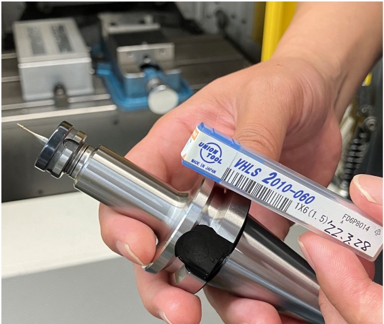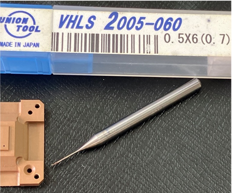 その時、加工していたスーパーエンプラ加工用に、コストメリットのある、φ3シャンク Vシリーズ ロングネックスクエアVHLSを紹介。