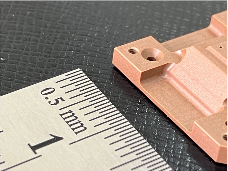 右の写真は、VHLS ロングネックスクエア φ0.5で加工した、スーパーエンプラの微細加工製品。高精度・高品質でありながら、コストダウンをすることが出来た。