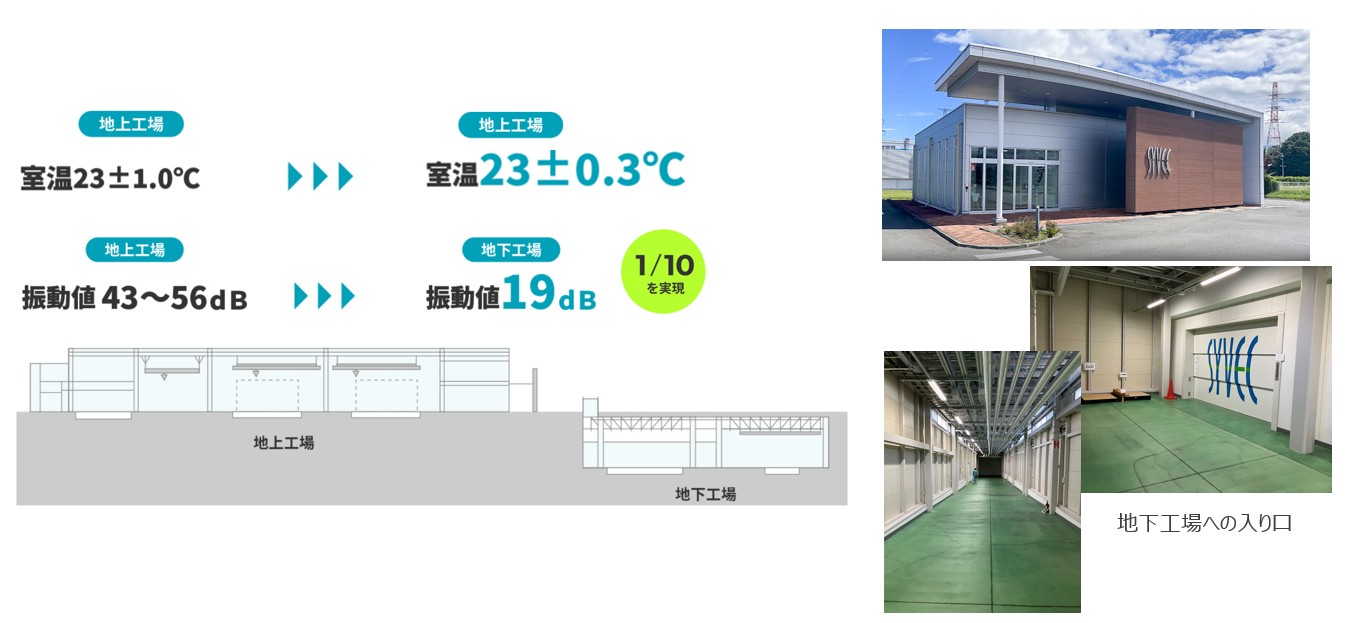 年間を通して23℃ ±0.3℃ に保たれた環境で高精度な製品を安定して製造。振動を抑制する特殊な基礎工事を施し、金型加工に必要な超微振動空間を実現。