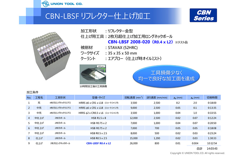 CBN-LBSF STAVAX リフレクター金型仕上げ加工